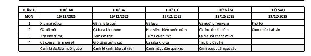 Suất ăn mẫu ngày 17/12 do nhà trường cung cấp