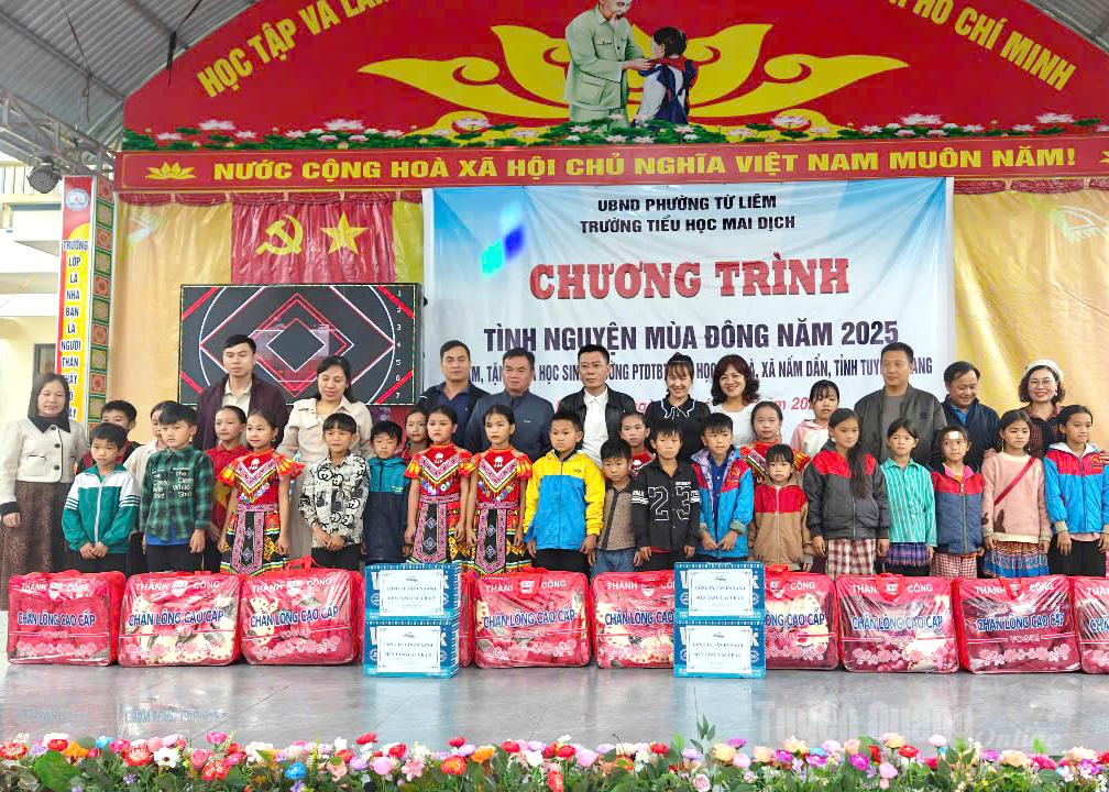 Trường Tiểu học Mai Dịch trao tặng quà tại Trường PTDT Bán trú Tiểu học Chế Là.