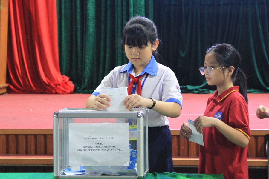 Sau buổi phát động, Trường Tiểu học, THCS và THPT Sao Việt đã tiếp nhận được 156.695.000 đồng. Đây là tấm lòng của cán bộ, giáo viên, nhân viên, cha mẹ học sinh và học sinh toàn trường chung tay ủng hộ đồng bào các tỉnh, thành phố ở miền Bắc, miền Trung bị ảnh hưởng bởi bão số 10.
