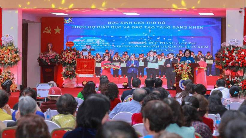 Trường trung học cơ sở Ngô Sĩ Liên (phường Cửa Nam, Hà Nội) đón nhận Cờ thi đua của Thủ tướng Chính phủ.