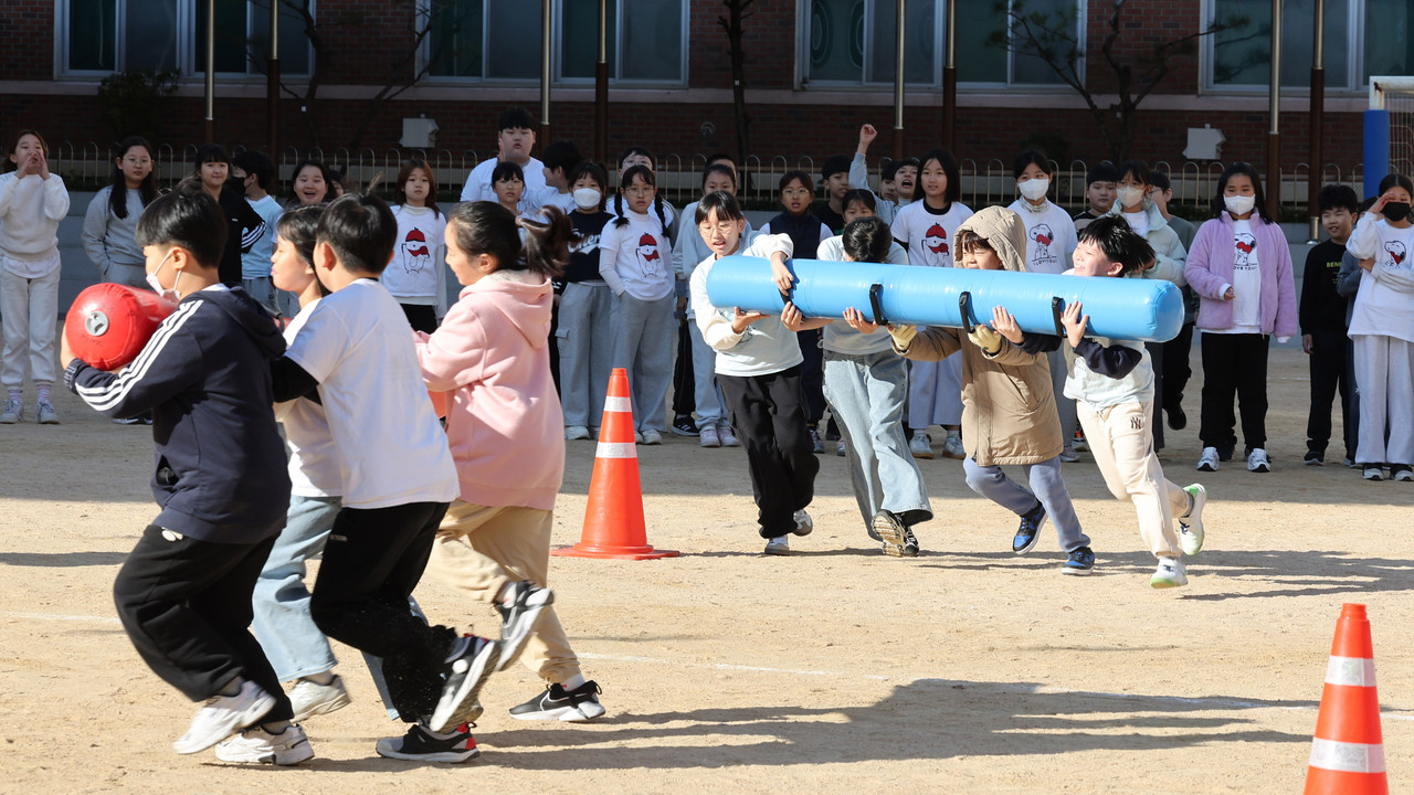 Học sinh tham gia một hoạt động ngoài trời tại một trường tiểu học ở Seoul. Ảnh: Newsis