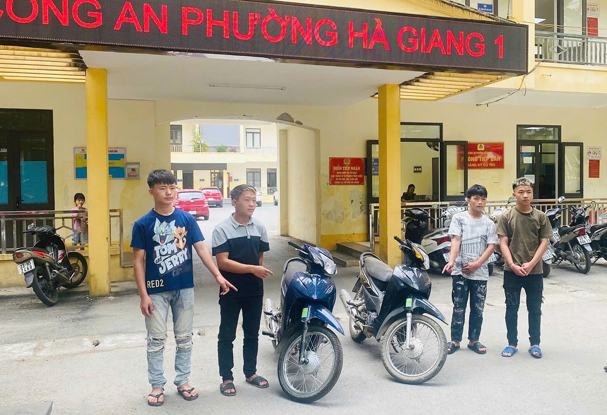 Nhóm 4 đối tượng trộm cắp xe máy bị Công an phường Hà Giang 1 phối hợp bắt giữ, thu hồi tang vật.