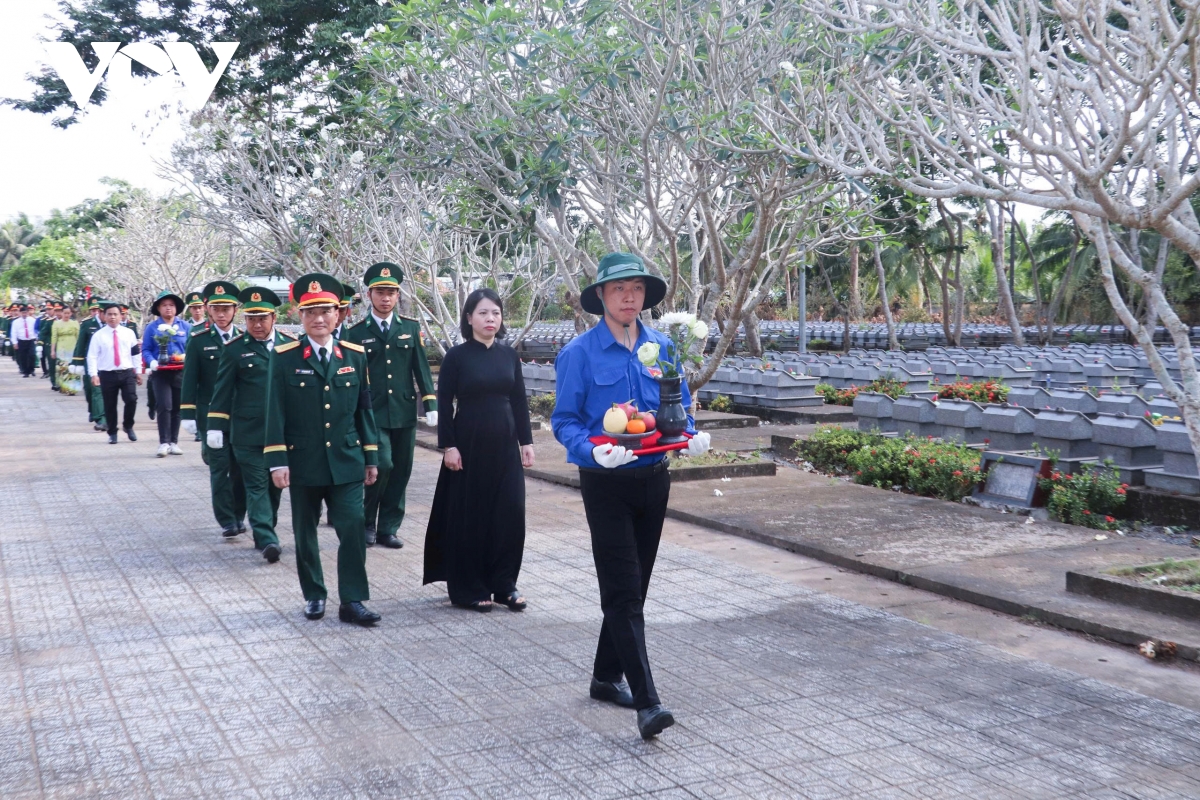 Phát biểu tại buổi lễ, bà Nguyễn Thị Bé Mười, Phó Chủ tịch UBND tỉnh Vĩnh Long bày tỏ lòng biết ơn sâu sắc đối với các Anh hùng liệt sĩ đã hy sinh vì sự nghiệp giải phóng dân tộc. Dù chưa xác định được đầy đủ tên tuổi, quê quán của các liệt sĩ, nhưng sự hy sinh vì độc lập, tự do của Tổ quốc, vì hạnh phúc nhân dân của các anh, các chú là hết sức to lớn.