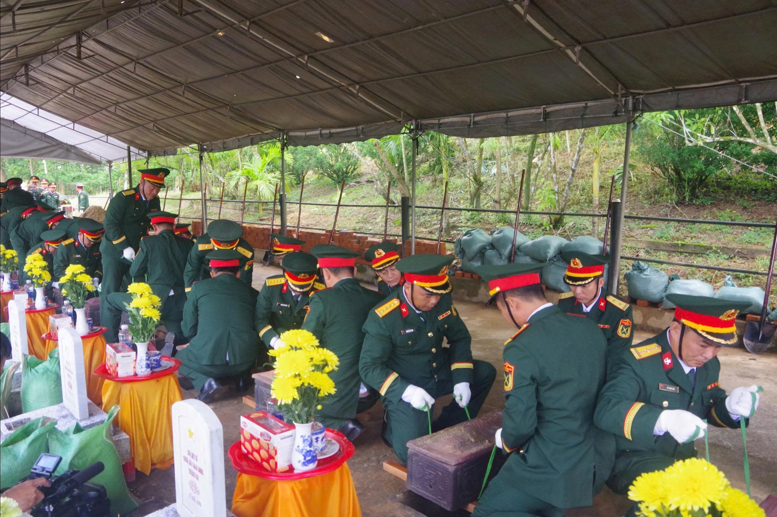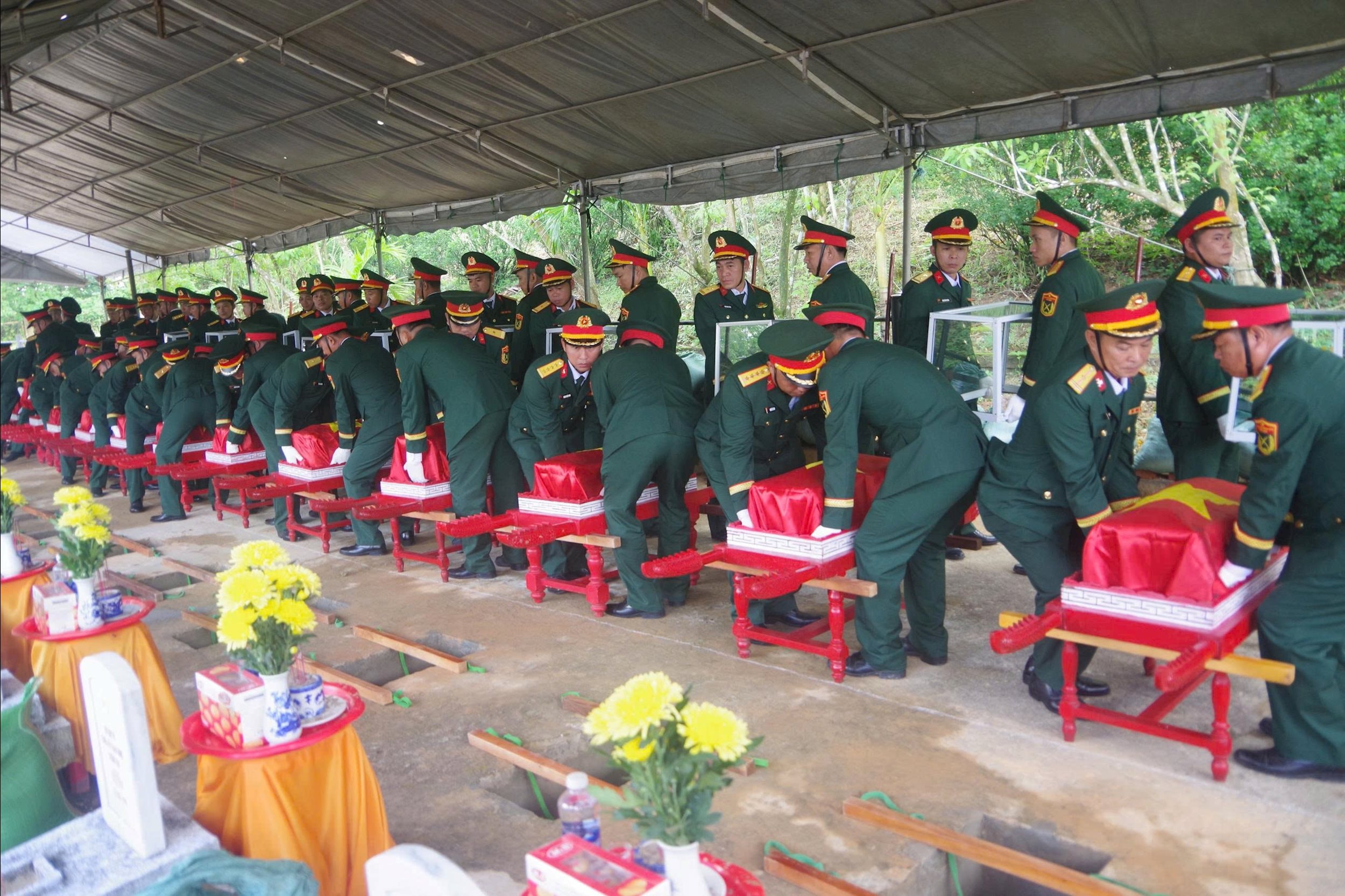 Lực lượng vũ trang, lãnh đạo địa phương đưa tiễn các hài cốt sĩ nói trên đến nơi an táng bên cạnh các đồng đội tại nghĩa trang liệt sĩ Khe Sanh