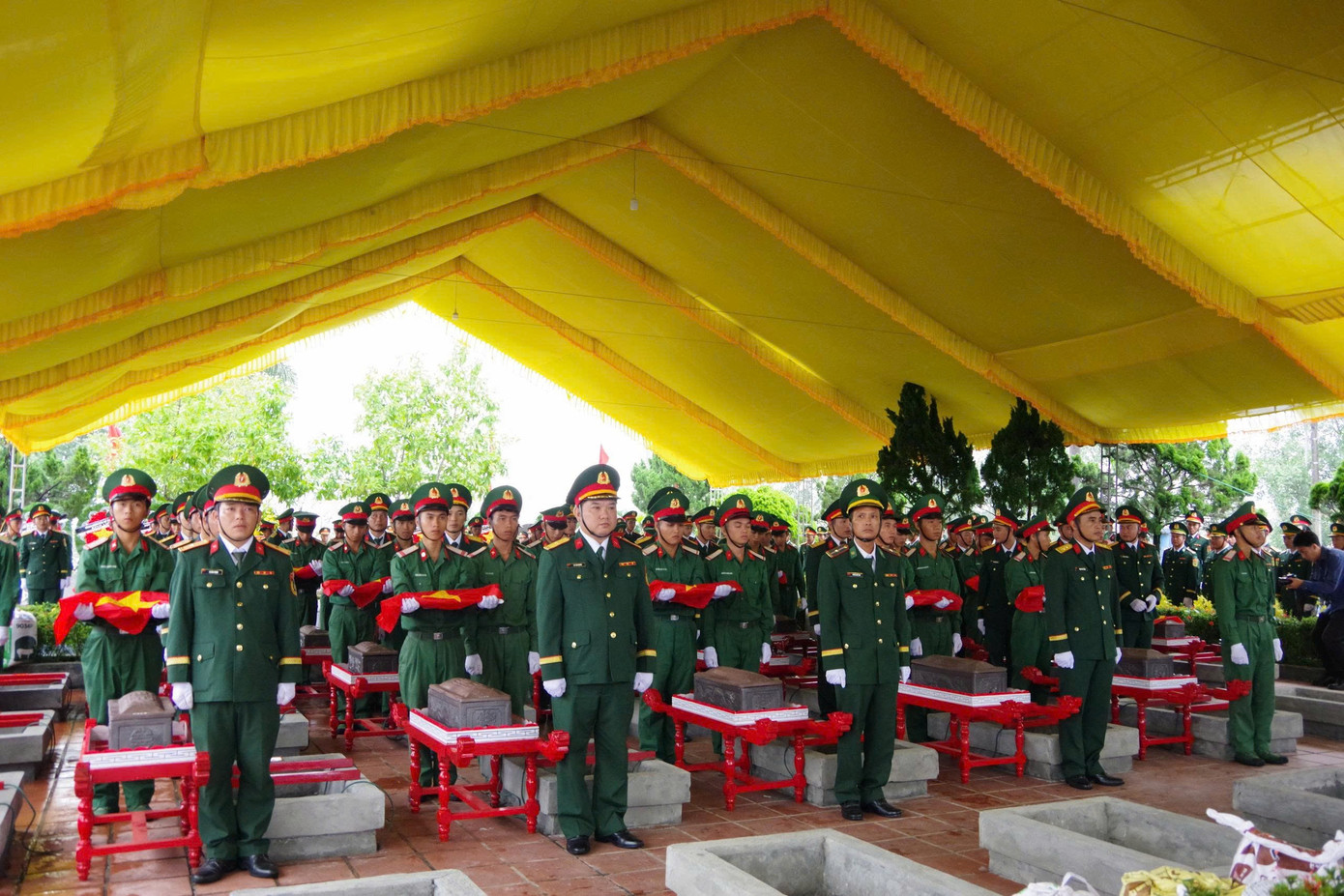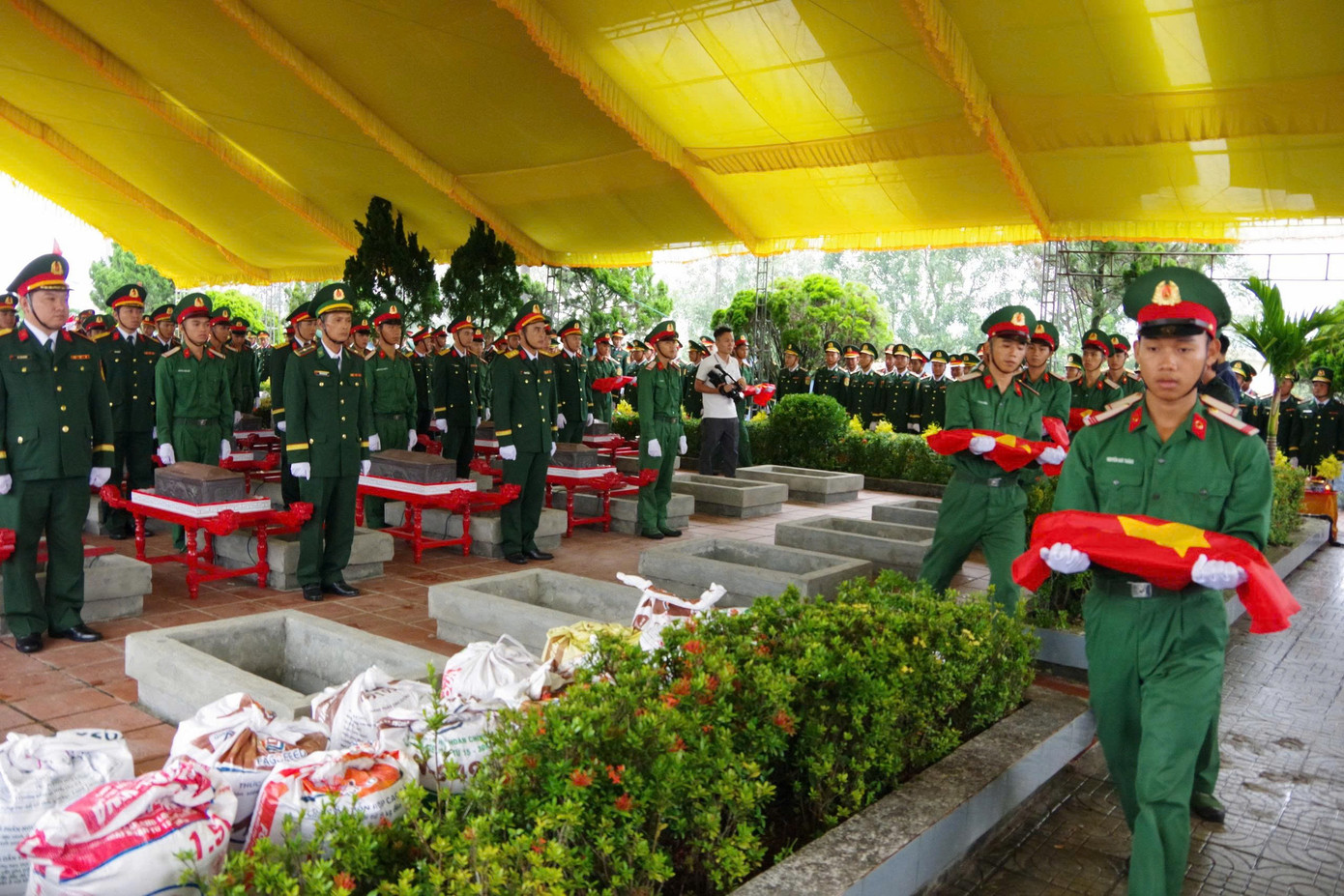 Sau Lễ truy điệu, 34 hài cốt liệt sĩ đã được cấp ủy, chính quyền và lực lượng vũ trang địa phương tổ chức an táng tại Nghĩa trang Liệt sĩ phường Quảng Trị.