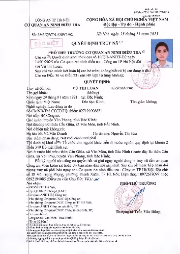 Quyết định truy nã Vũ Thị Loan