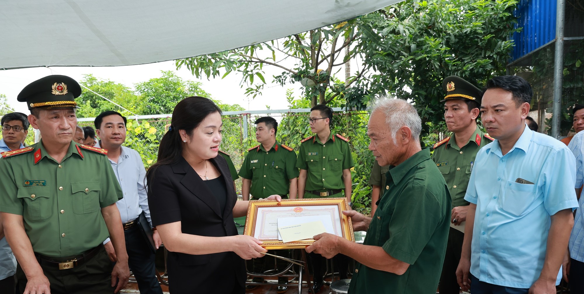 Phó chủ tịch UBND tỉnh Thái Nguyên Nguyễn Thị Loan thăm hỏi và trao bằng khen truy tặng cho đại diện gia đình.