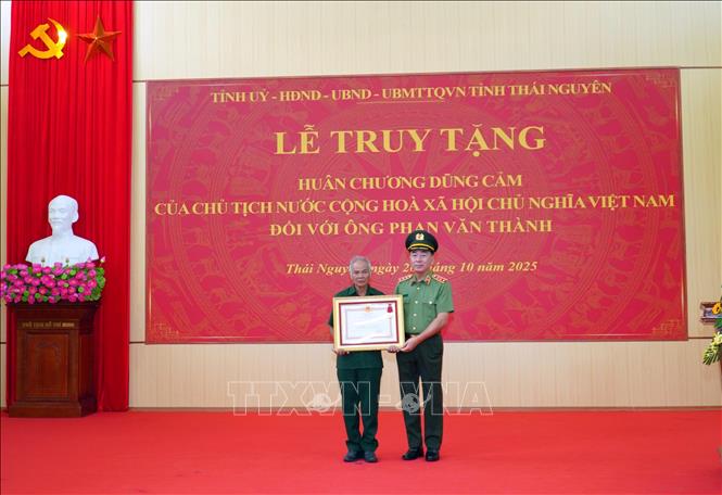 Tại buổi lễ, thừa ủy quyền Chủ tịch nước, Thượng tướng Trần Quốc Tỏ, Thứ trưởng Bộ Công an đã trao Huân chương Dũng cảm cho thân nhân ông Phan Văn Thành.