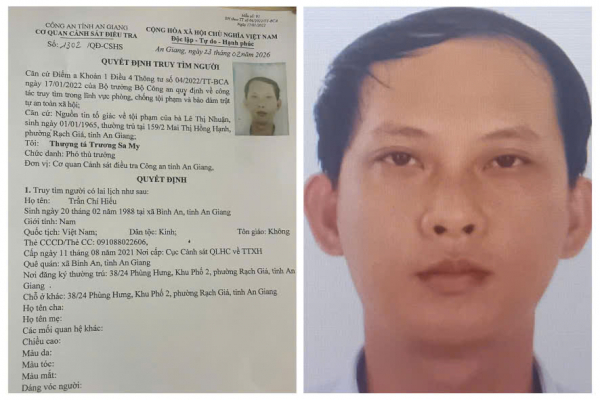 Quyết định truy tìm đối với Trần Chí Hiếu.