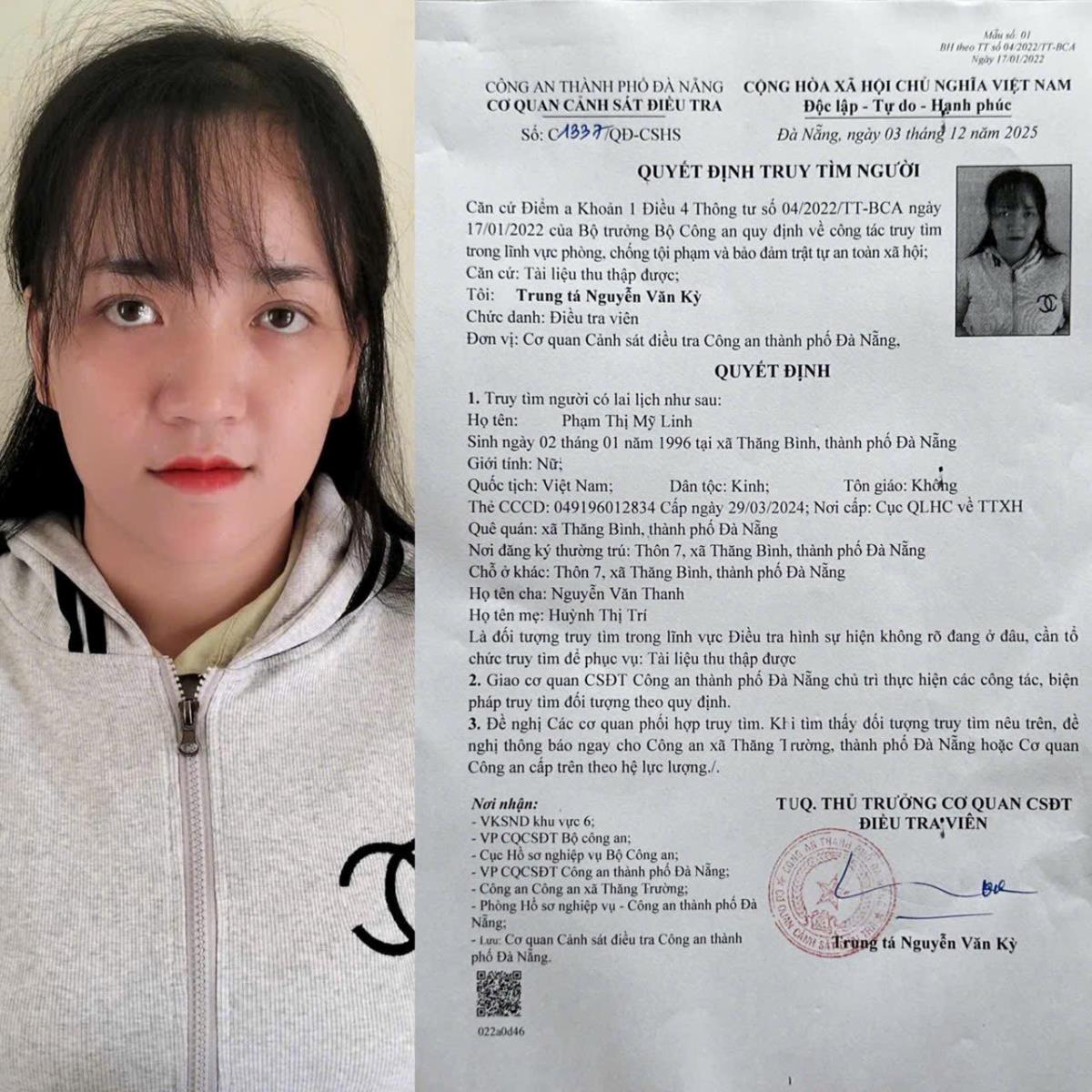 Cơ quan CSĐT Công an TP Đà Nẵng đang truy tìm Phạm Thị Mỹ Linh.