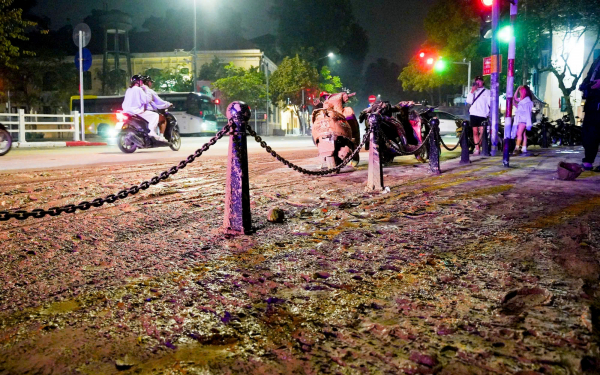 Trước đó, khuya 16/11, một lớp bùn nhão phủ khắp mặt đường tại vực ngã tư Tôn Đức Thắng - Nguyễn Thái Học (phường Văn Miếu - Quốc Tử Giám) có màu nâu sẫm, vết bùn lan rộng trên đoạn đường dài khoảng 15m.