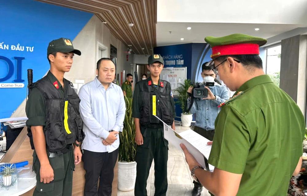 Theo đó, công đã khởi tố, bắt tạm giam đối với Nguyễn Quang Hoàng (tổng giám đốc); Nguyễn Đỗ Đạt (giám đốc tài chính); Trần Thị Mỹ Hạnh (trưởng phòng ngân quỹ); Tô Hồng Trà và Trần Thị Kiều Trang (giám đốc, phó giám đốc chi nhánh sở giao dịch) về tội lừa đảo chiếm đoạt tài sản.