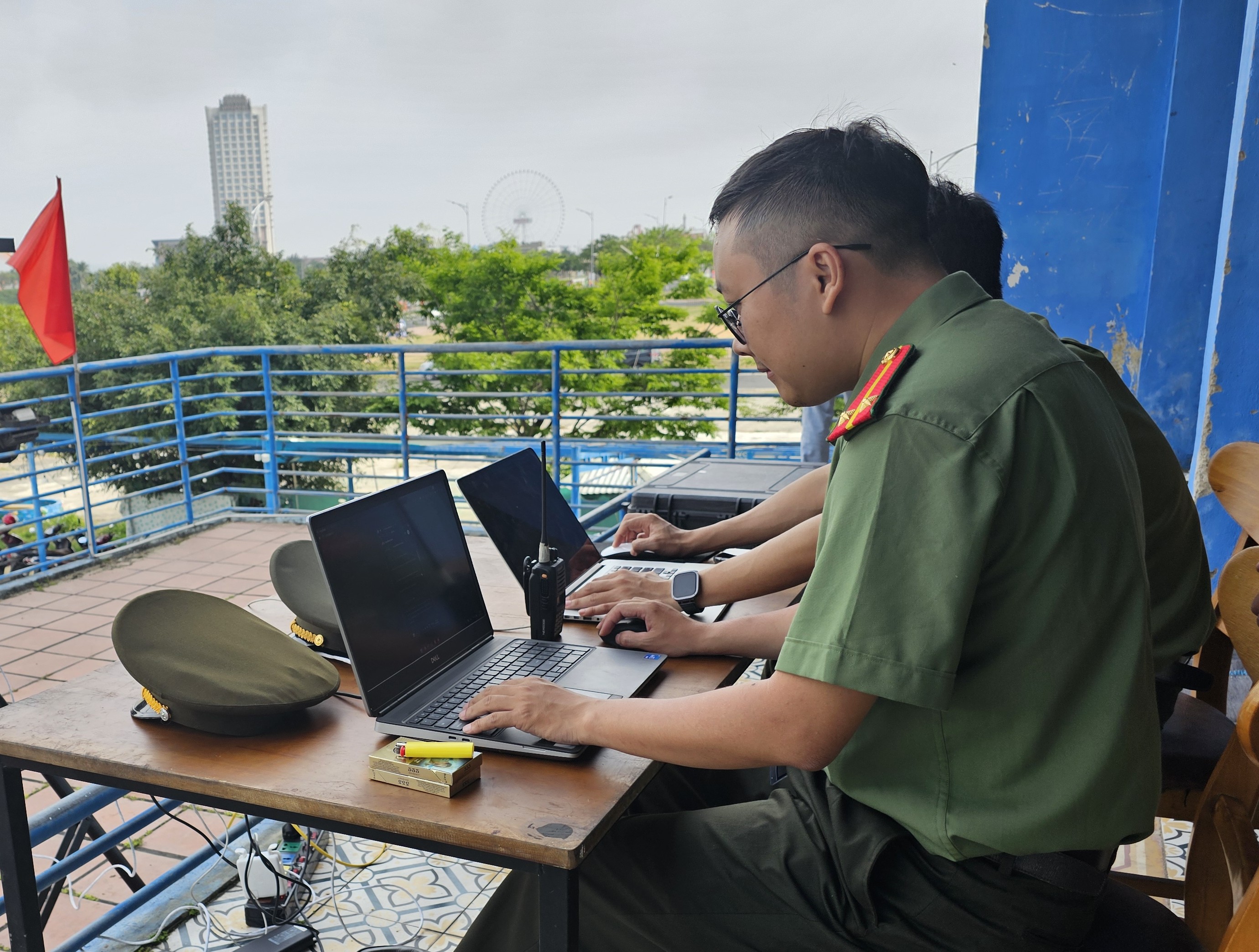 Ngay khi nhận chỉ đạo của Giám đốc Công an TP Đà Nẵng, các đơn vị nghiệp vụ đã khẩn trương vào cuộc. Chỉ 15 phút sau khi nhận lệnh, lực lượng Phòng Kỹ thuật nghiệp vụ và ngoại tuyến – đơn vị chuyên trách đã có mặt, kích hoạt hệ thống giám sát chuyên dụng. Dù quân số mỏng, đơn vị đồng thời đảm bảo nhiều nhiệm vụ trong dịp tết nhưng vẫn tổ chức trực chiến 24/24 giờ, vận hành hệ thống giám sát liên tục.