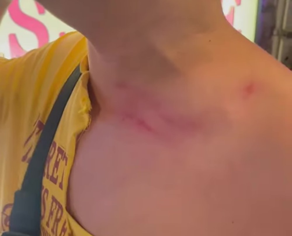 Tài xế L. bị trầy xước ở cổ. Ảnh: NVCC