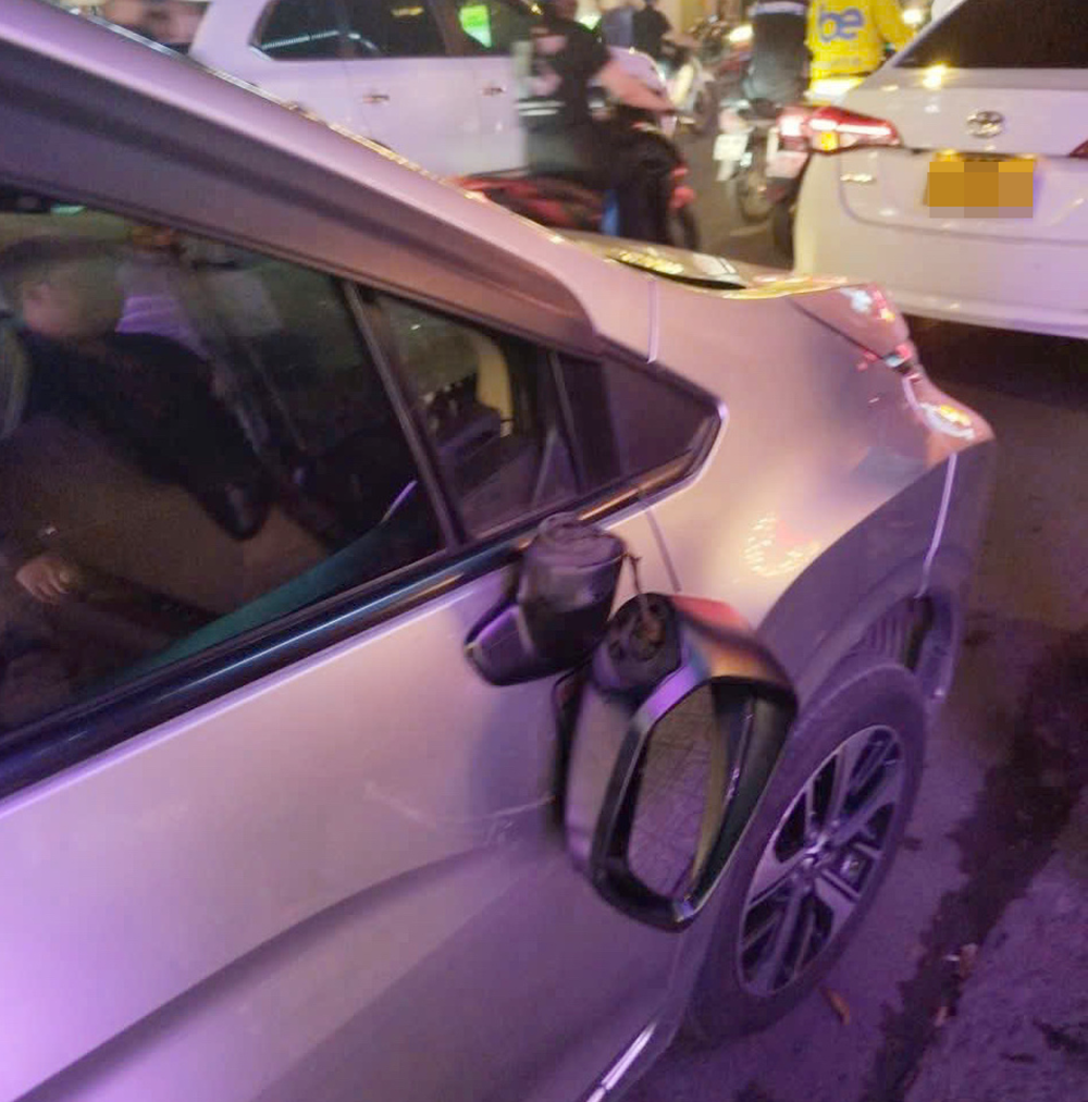 Kính chiếu hậu xe bị bẻ gãy. Ảnh: NVCC