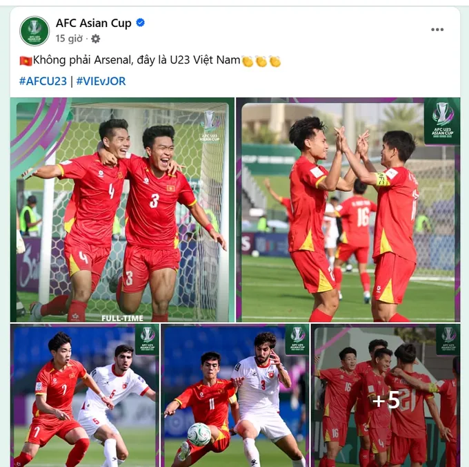 Fanpage AFC chúc mừng chiến thắng của U23 Việt Nam