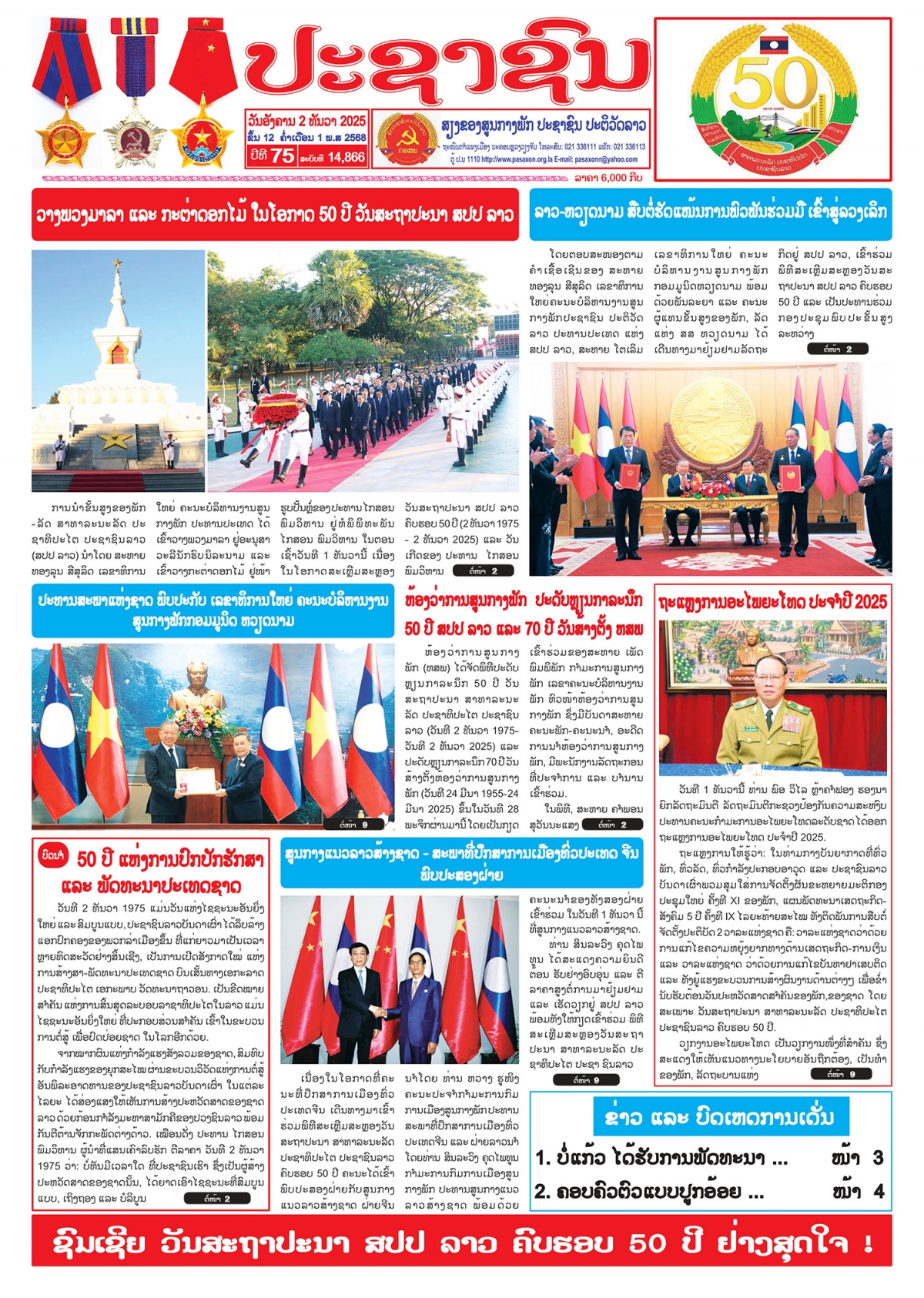 Báo Nhân Dân Lào - tiếng nói của Trung ương Đảng Nhân dân Cách mạng Lào đăng nhiều bài viết đậm nét về mối quan hệ Lào - Việt Nam, tình hữu nghị vĩ đại, đoàn kết đặc biệt và hợp tác toàn diện là mối quan hệ có một không hai trên thế giới, độc lập của dân tộc Lào và 50 năm bảo vệ và phát triển đất nước Lào.