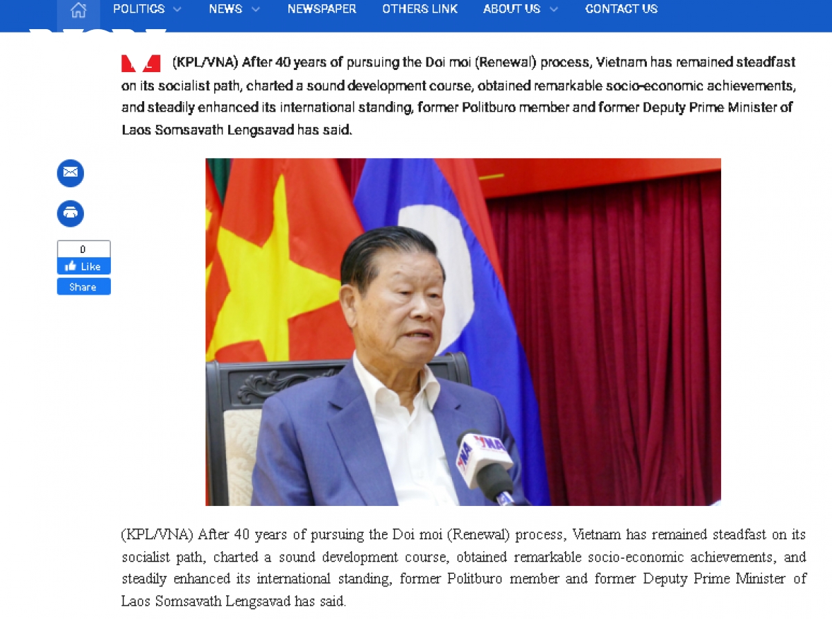 Các bài viết của Vientiane Times đánh giá cao những thành tựu kinh tế - xã hội nổi bật của Việt Nam trong những năm gần đây, dẫn các số liệu cho thấy tăng trưởng GDP bình quân giai đoạn 2021-2025 đạt khoảng 6,3%/năm, thuộc nhóm cao trên thế giới, cùng với những tiến bộ rõ rệt trong giảm nghèo và nâng cao đời sống người dân.