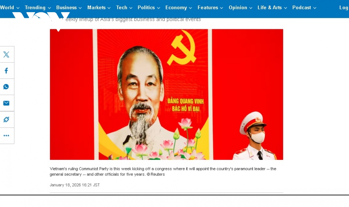 Nikkei Asia đăng tải hình ảnh và thông tin về Đại hội XIV của Đảng