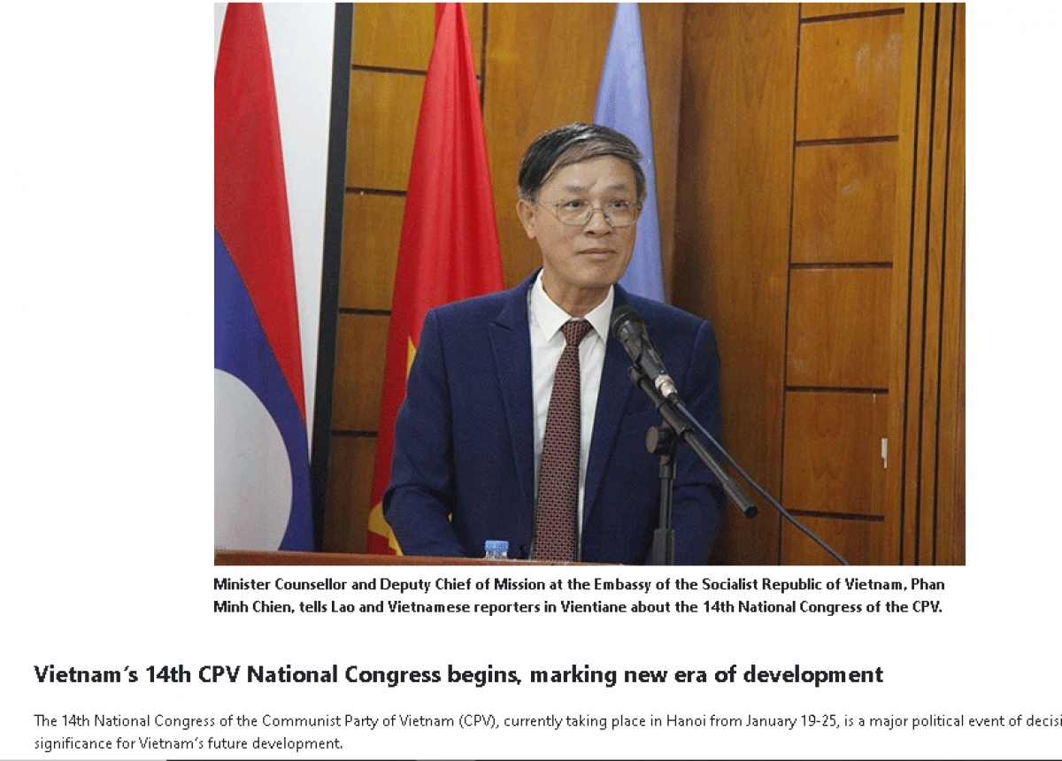 Vientianetime của Lào đăng tải bài viết về ngày làm việc đầu tiên Đại hội XIV của Đảng