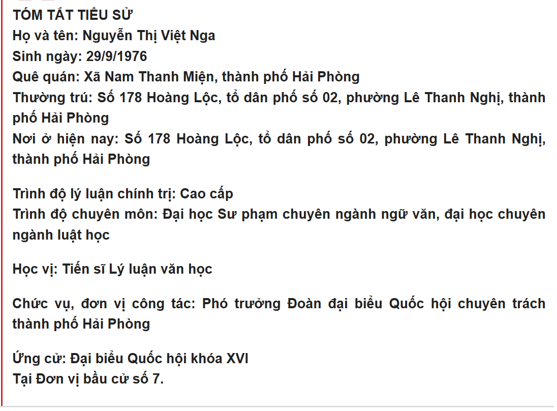 Trò chuyện với Tri thức và Cuộc sống, TS Nguyễn Thị Việt Nga, Ủy viên Thành ủy, Phó Trưởng Đoàn đại biểu Quốc hội chuyên trách thành phố Hải Phòng, Ủy viên Ủy ban Văn hóa và Xã hội của Quốc hội cho biết, trong suốt quá trình vinh dự là đại biểu Quốc hội trong 10 năm, 2 khóa Quốc hội, bà đã thực hiện tốt những lời cam kết, lời hứa trước cử tri năm nào.