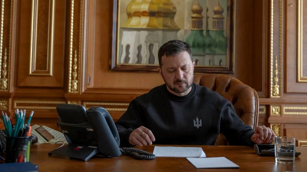 Ông Zelensky trong phòng làm việc. Ảnh: Telegraph