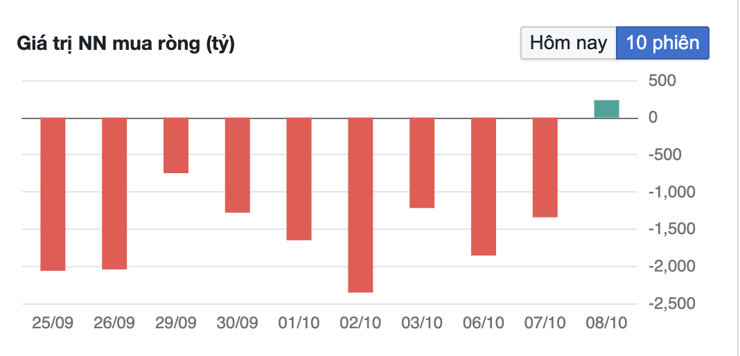 Khối ngoại dừng chuỗi mua ròng liên tiếp 15 phiên qua.