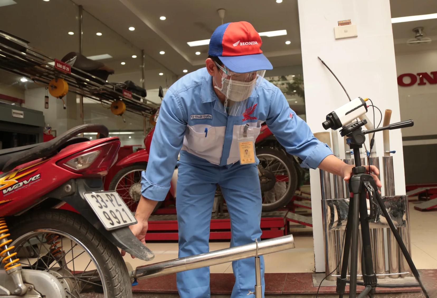 Từ ngày 1-7-2027, Hà Nội và thành phố Hồ Chí Minh sẽ bắt đầu thực hiện kiểm định khí thải xe mô tô, xe gắn máy tham gia giao thông đường bộ. Ảnh: Phạm Công