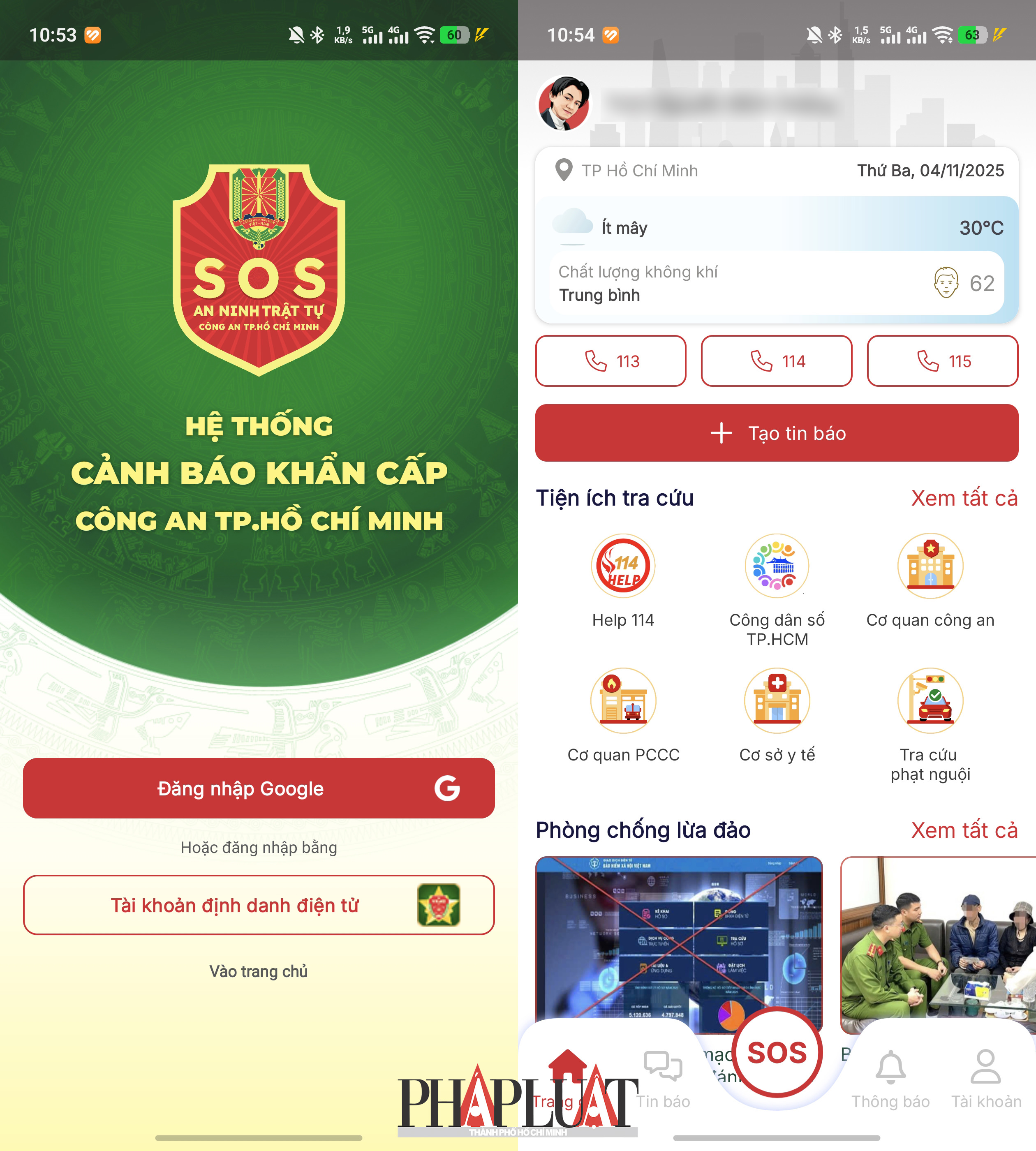 Giao diện ứng dụng SOS An ninh trật tự. Ảnh: MINH HOÀNG