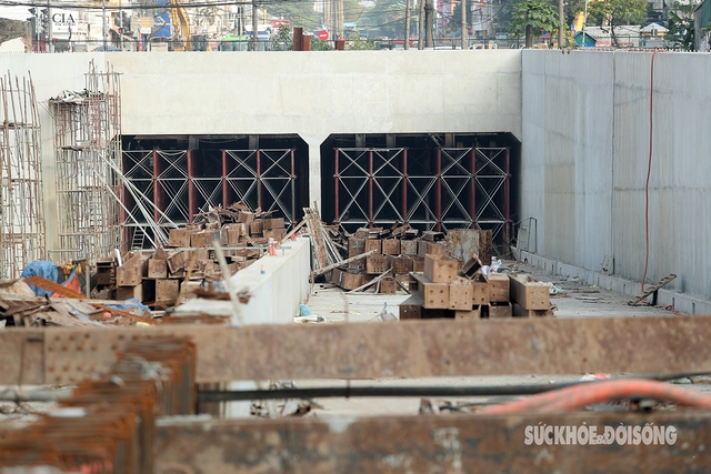 Toàn cảnh khu vực thi công hầm chui nút giao Giải Phóng - Kim Đồng.