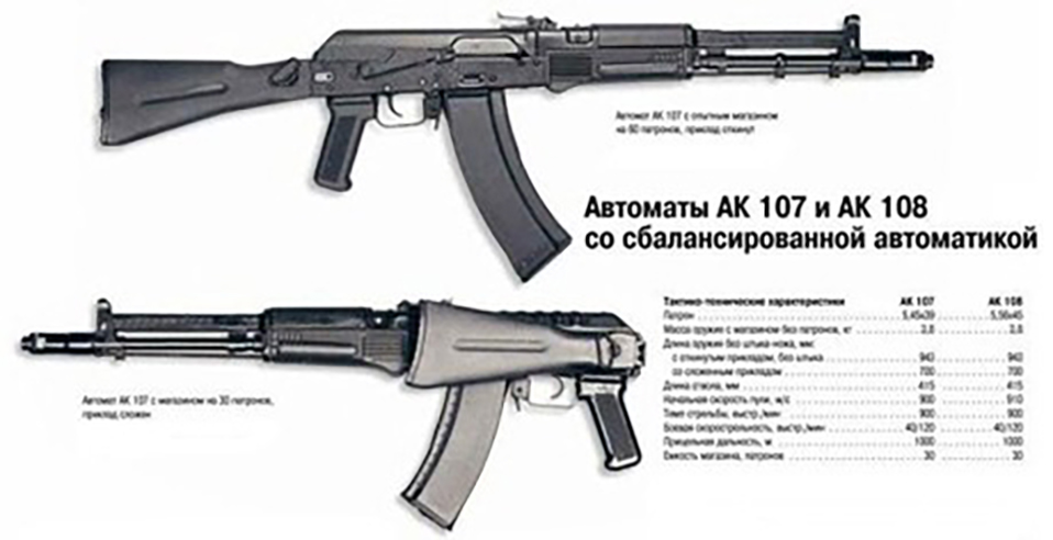 AK-107 là một trong những sản phẩm của quá trình thử nghiệm này: không lật đổ nền tảng AK nhưng thêm vào một hệ cơ khí phức tạp hơn gọi là hệ thống cân bằng — ý tưởng là khử một phần lực phản hồi bằng cách cho một khối đối trọng chuyển động ngược chiều với bộ phận piston/bolt, nhờ đó phần lớn lực làm súng rung và nòng lệch được triệt tiêu.