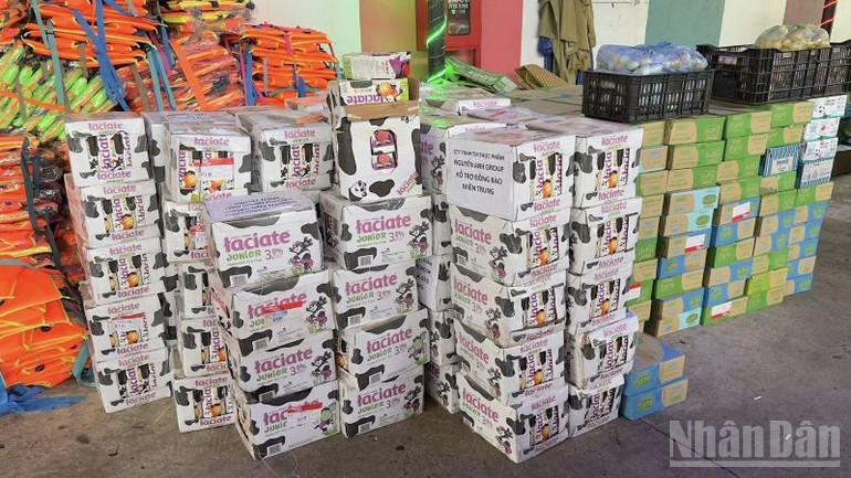 Hàng cứu trợ thiết yếu sẵn sàng gửi vào vùng bão lũ Gia Lai, Khánh Hòa đêm 22/11/2025... (Ảnh: THANH HÀ)