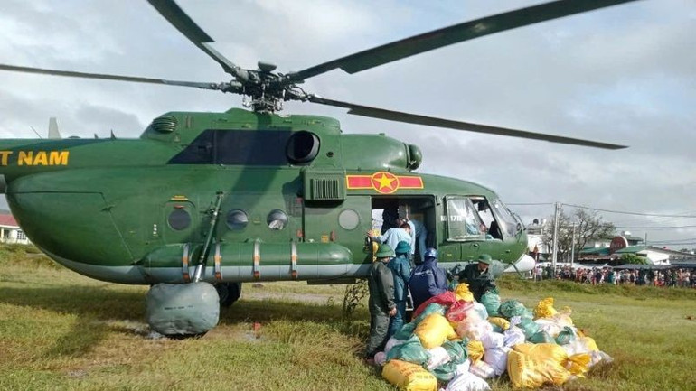 Trực thăng hỗ trợ vùng bị cô lập sáng 23/11. (Ảnh: VGP)