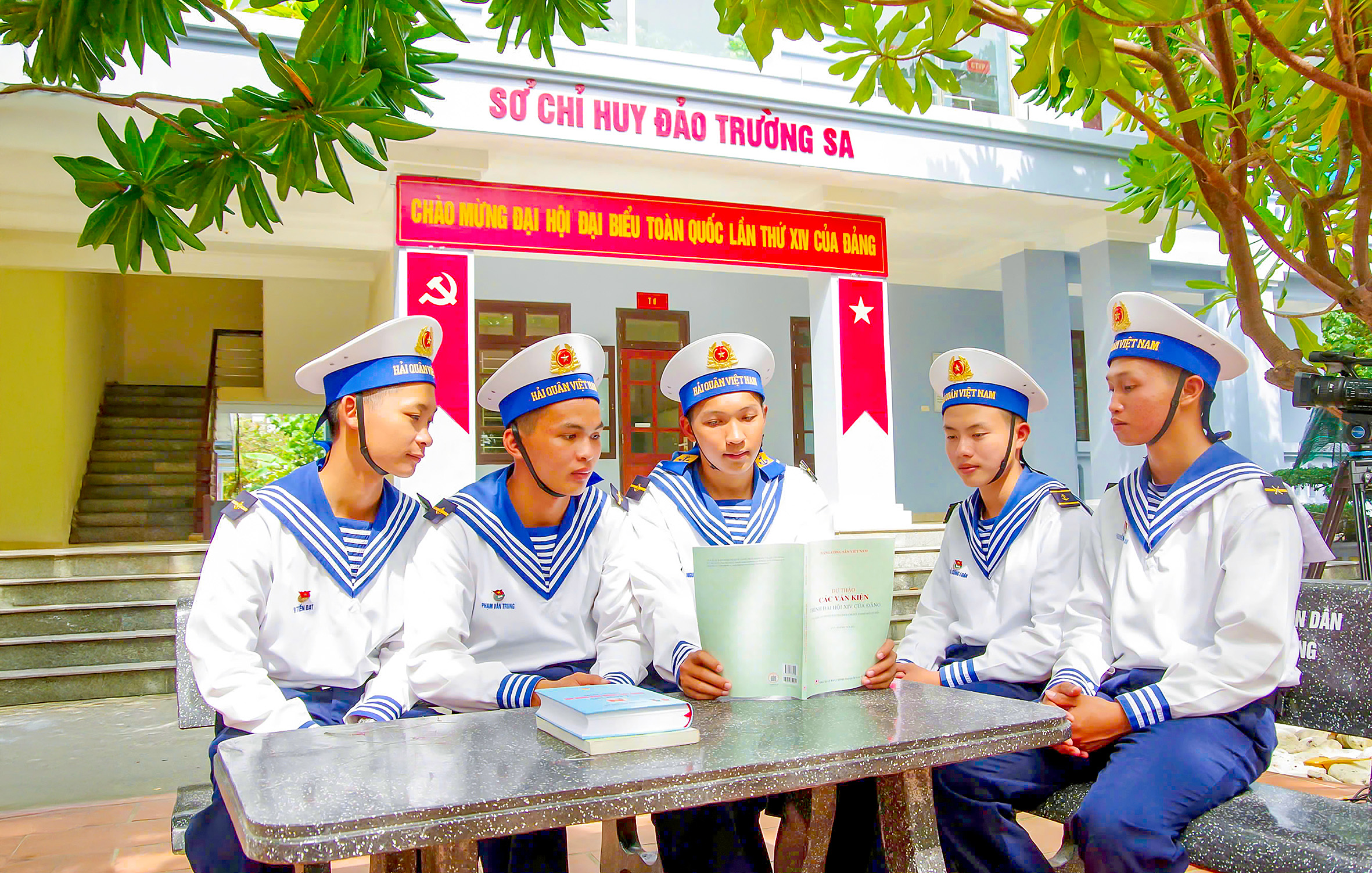 Chiến sĩ trẻ trên đảo Trường Sa tìm hiểu thông tin về Đại hội Đảng