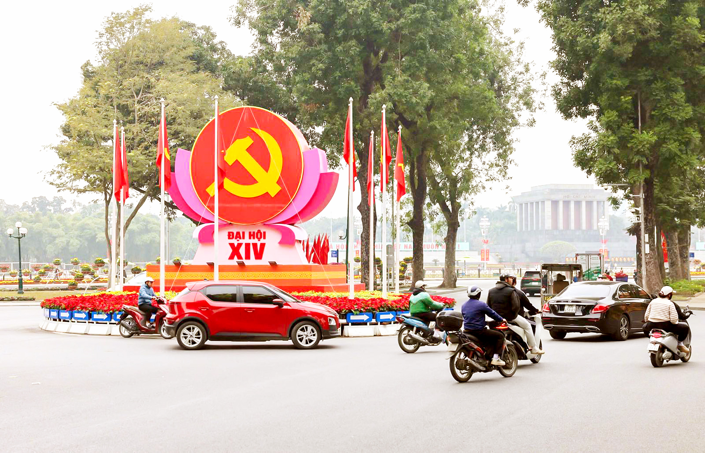 TP Hà Nội rực rỡ cờ hoa chào mừng Đại hội XIV của Đảng. Ảnh: QUANG PHÚC