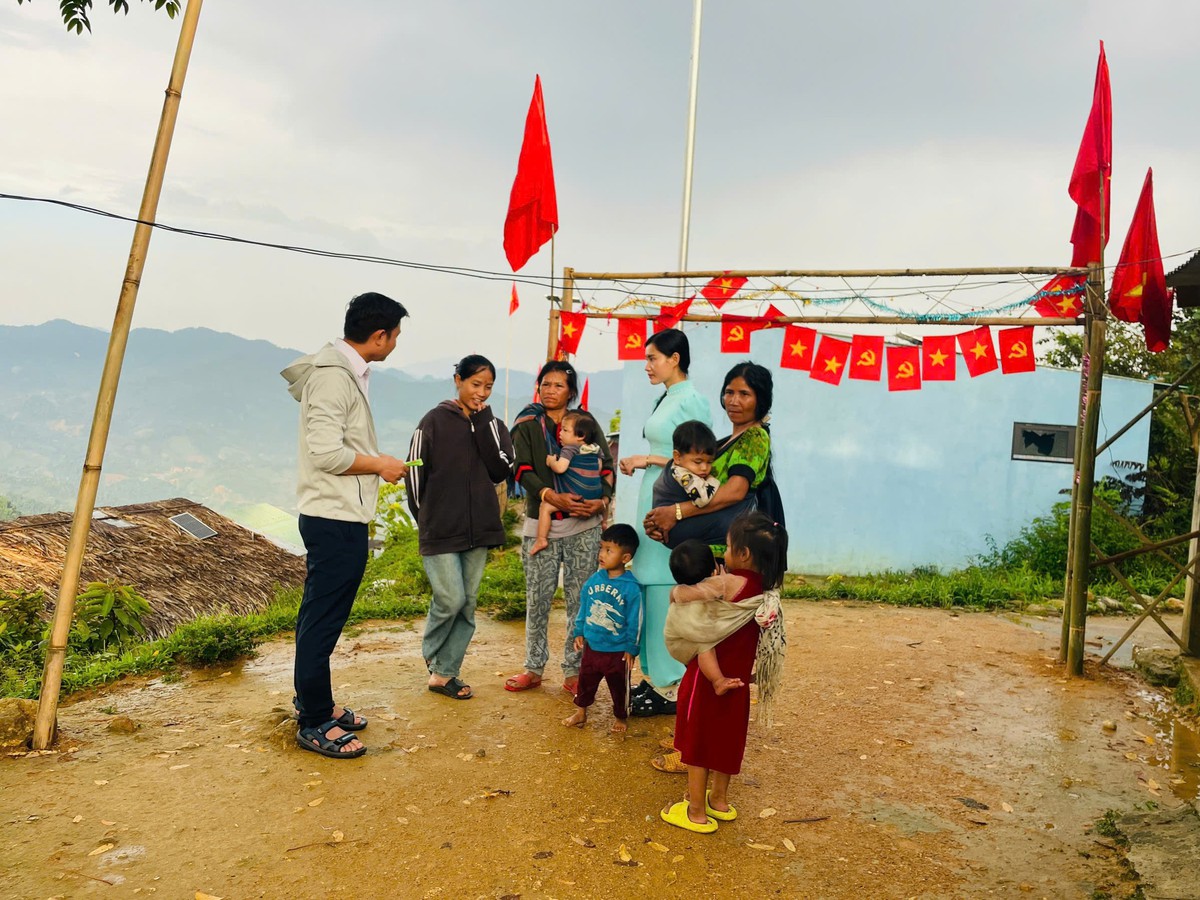 Giáo viên xã Trà Tập đến từng thôn vận động bà con tham gia bầu cử và ủng hộ cô giáo Đinh Thị Mia.