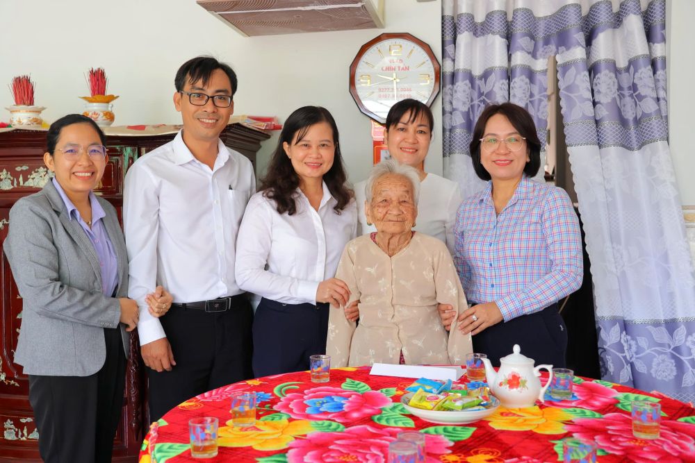 Lãnh đạo ngành tỉnh và xã Mỹ Hiệp thăm, chúc tết Mẹ Việt Nam Anh hùng Nguyễn Thị Nhen (Ấp 4), tri ân những hy sinh, đóng góp to lớn của thế hệ đi trước.