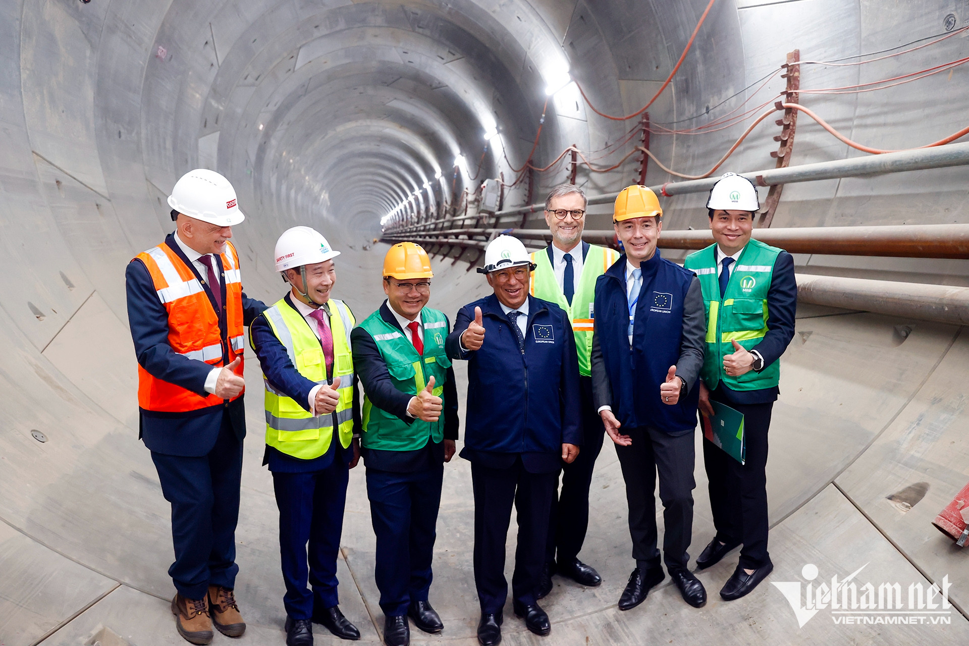 Chủ tịch Hội đồng châu Âu Antonio Costa cùng Đại sứ Pháp Olivier Brochet tại dự án metro tuyến số 3. Đây là dự án nhận được nguồn hỗ trợ tài chính lớn từ Pháp