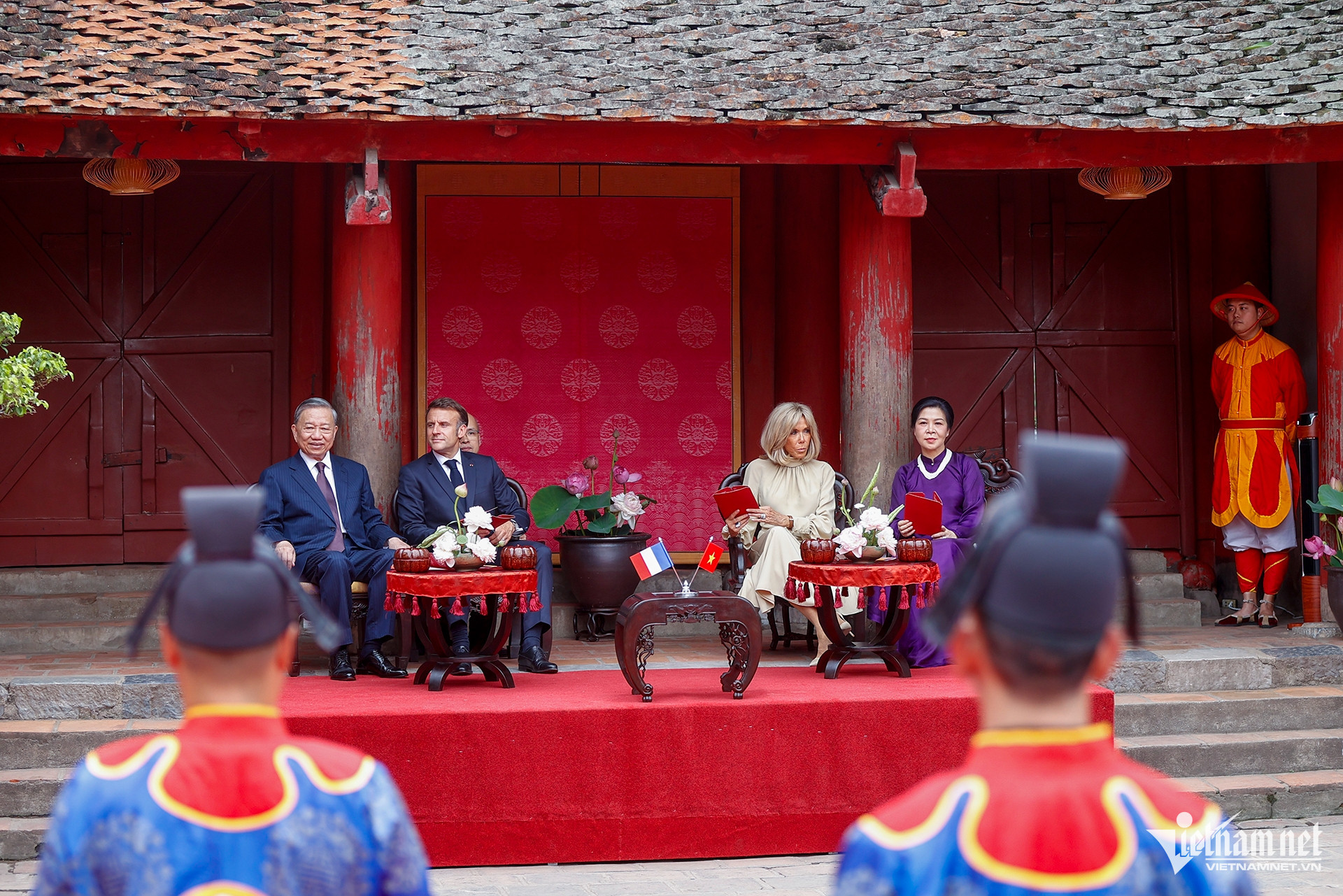Thứ nhất là bữa ăn trưa của Tổng Bí thư Tô Lâm và phu nhân với Tổng thống Pháp và phu nhân ngay tại Văn Miếu - Quốc Tử Giám. Tổng thống và phu nhân đã rất xúc động khi được tiếp đón tại một địa điểm mang nhiều tính biểu tượng.