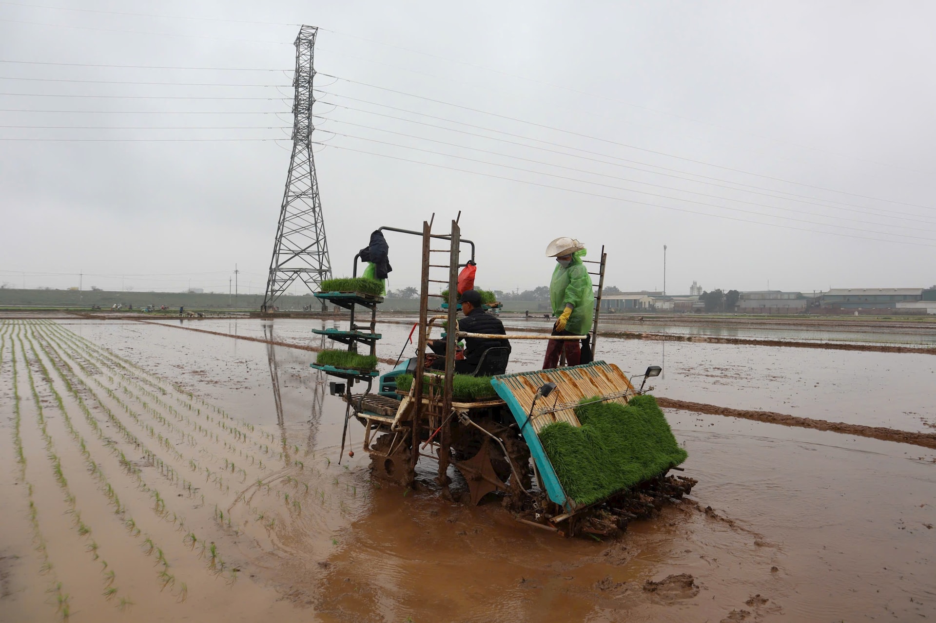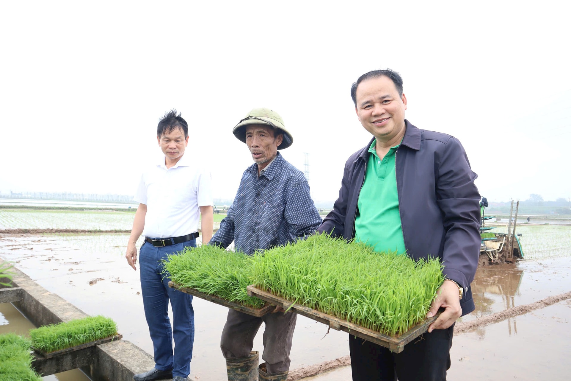 Có mặt tại cánh đồng khu vực Liên Hiệp những ngày này, chúng tôi ghi nhận không khí sản xuất khẩn trương. Ruộng được bừa đến đâu, máy cấy xuống giống ngay tới đó. Mạ được chuẩn bị sẵn trên giá thể, xếp ngay ngắn chờ đưa ra đồng. Ông Đỗ Hữu Huy, Giám đốc Hợp tác xã Dịch vụ nông nghiệp Liên Hiệp (xã Hát Môn) cho biết, đơn vị bắt đầu đưa cơ giới hóa vào sản xuất từ năm 2015. Tuy nhiên, máy cấy 6 hàng mới được đầu tư và đưa vào vận hành 3 năm gần đây; trước đó là máy cấy 4 hàng dắt tay, hiệu quả còn hạn chế.