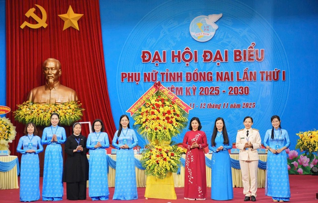 Ủy viên TƯ Đảng, Phó Chủ tịch Ủy ban TƯ MTTQ Việt Nam, Chủ tịch Hội LHPN Việt Nam Nguyễn Thị Tuyến (thứ 4 từ phải sang) cùng các đại biểu tại Đại hội phụ nữ tỉnh Đồng Nai lần thứ I, nhiệm kỳ 2025-2030. Đây là địa phương đầu tiên trong cả nước tổ chức Đại hội đại biểu Phụ nữ cấp tỉnh. Đại hội phụ nữ tỉnh Đồng Nai lần thứ I đã đưa nội dung “3 an” vào Nghị quyết Đại hội.