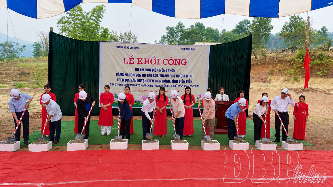 Huyện Điện Biên Đông (cũ) khởi công dự án lưới điện nông thôn tại bản Háng Lìa, xã Keo Lôm (nay là xã Na Son) từ nguồn vốn TP. Hồ Chí Minh hỗ trợ . Ảnh tư liệu.