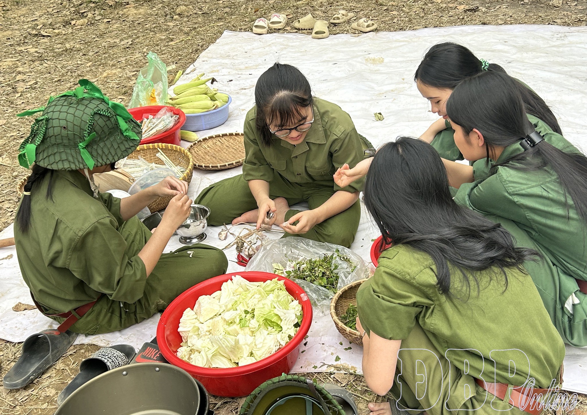 Học sinh trải nghiệm cuộc sống chiến sĩ năm xưa.
