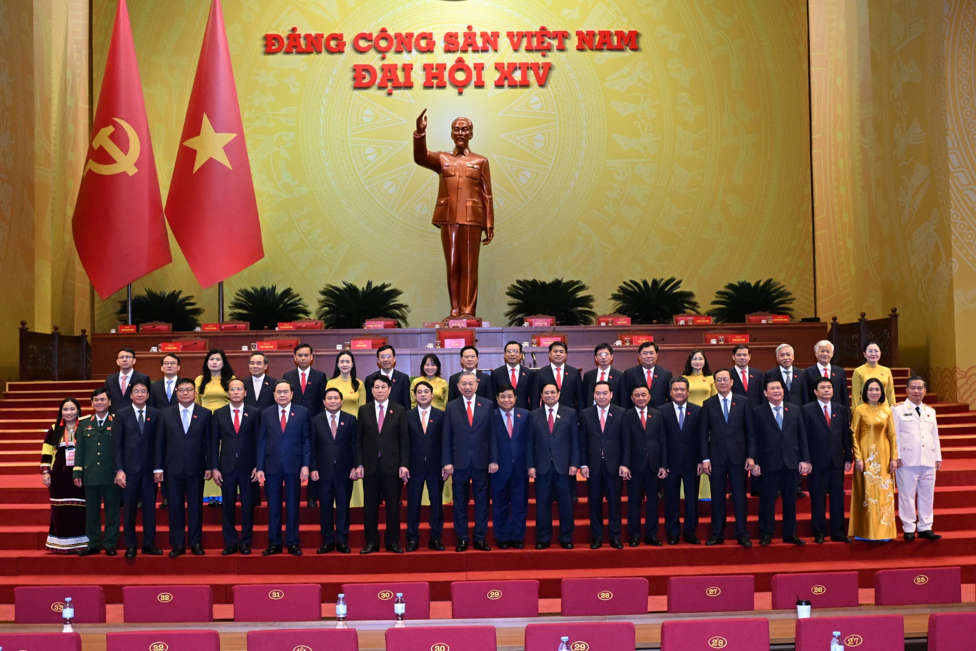Các đồng chí lãnh đạo Đảng, Nhà nước cùng Đoàn đại biểu Đảng bộ tỉnh Khánh Hòa dự Đại hội XIV.