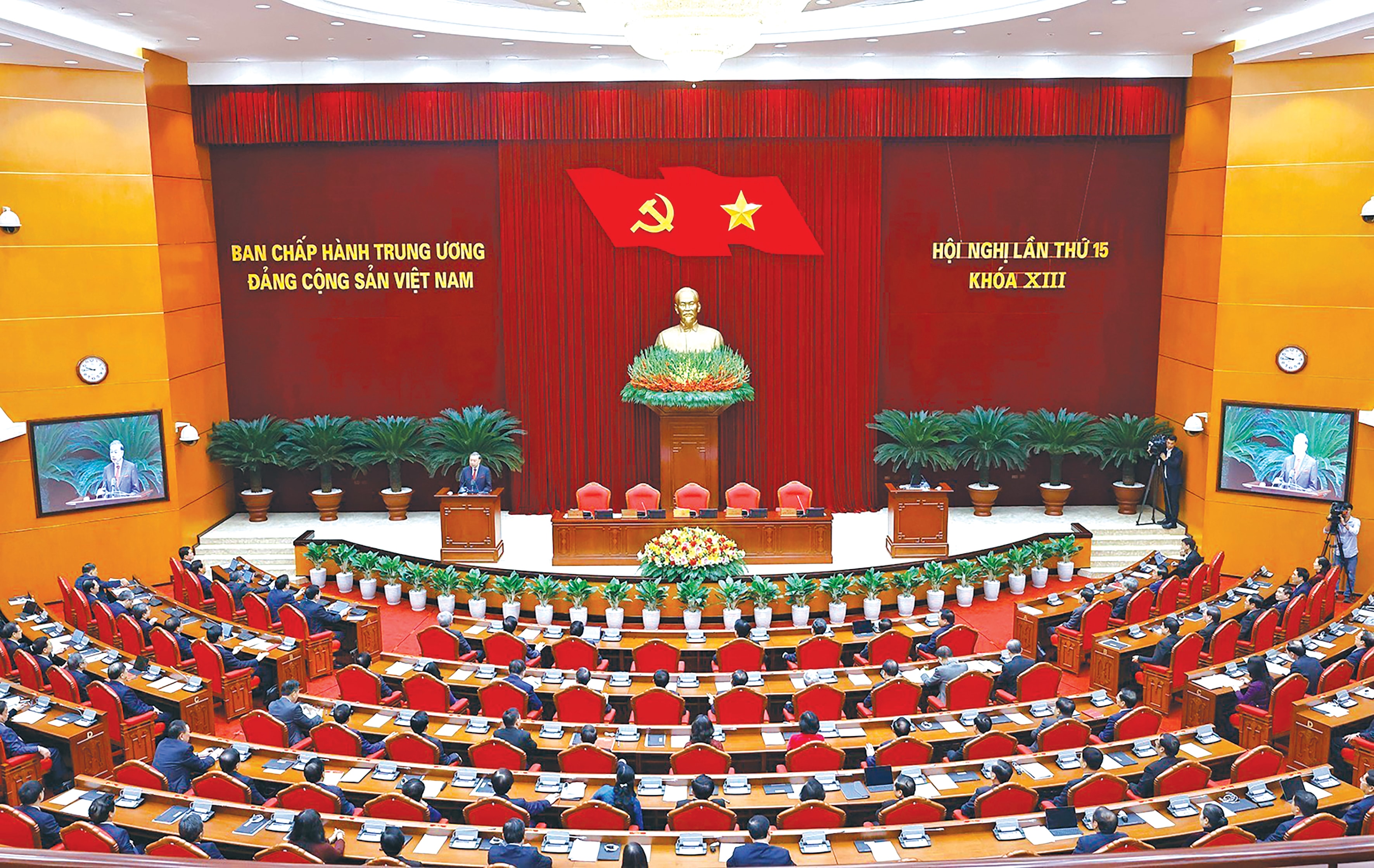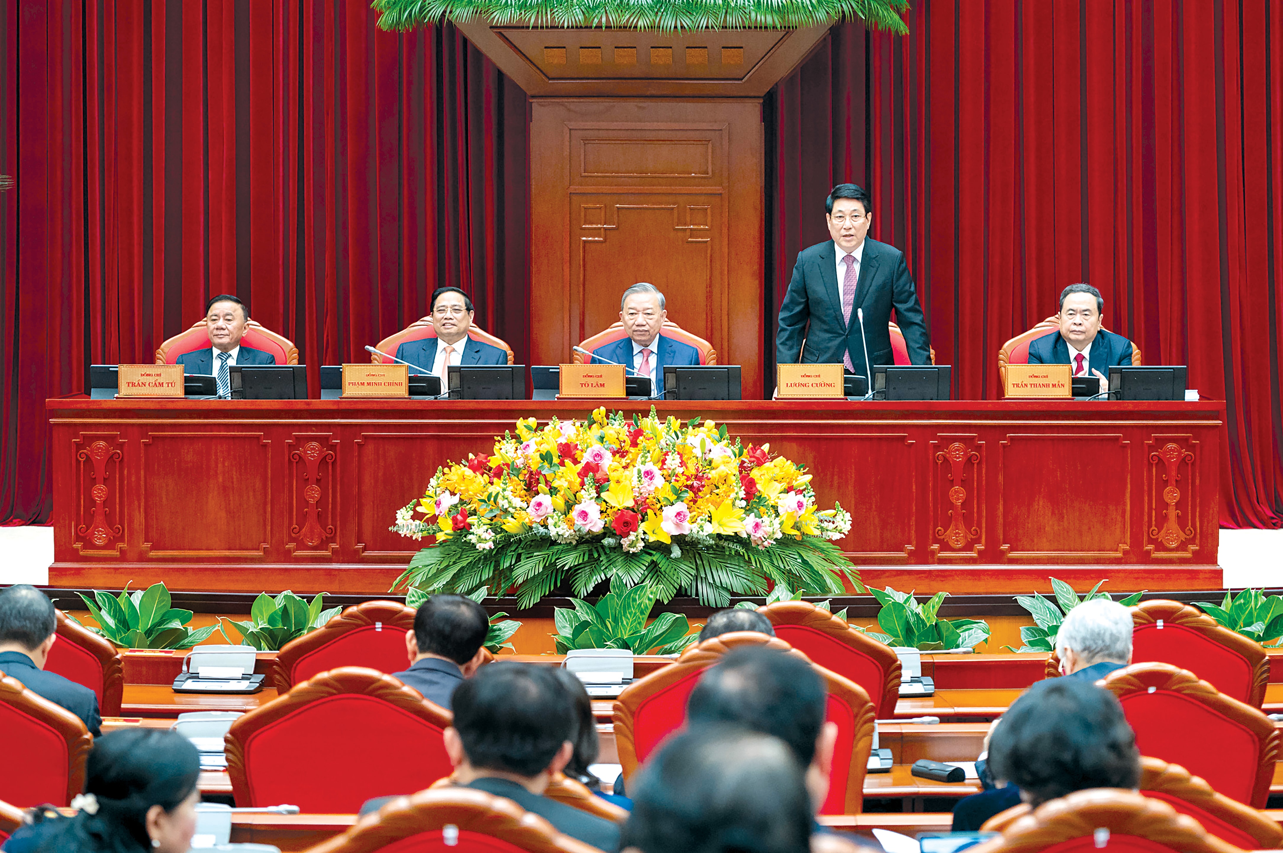 Chủ tịch nước Lương Cường điều hành phiên khai mạc Hội nghị lần thứ 15 Ban Chấp hành Trung ương Khóa XIII. Ảnh: Phạm Thắng