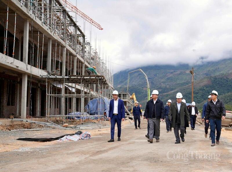 Phó Chủ tịch Thường trực UBND tỉnh Lai Châu Tống Thanh Hải cùng đại diện Tập đoàn Công nghiệp - Năng lượng Quốc gia Việt Nam kiểm tra tiến độ Dự án Trường Phổ thông nội trú liên cấp Tiểu học và THCS xã Phong Thổ.