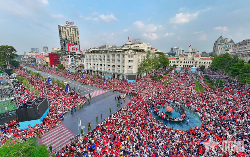 Dòng người đổ về các con phố trung tâm, nơi đoàn quân diễu binh, diễu hành kỷ niệm 50 năm Ngày giải phóng miền Nam, thống nhất đất nước (30-4-1975 / 30-4-2025).