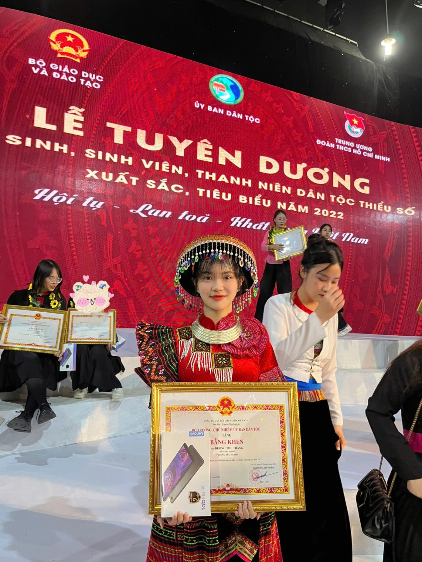 Với những nỗ lực không ngừng nghỉ trong công việc và học tập, Thu Trang đã đạt được kết quả xứng đáng. Năm 2022, cô đoạt giải Nhất cuộc thi Khoa học kỹ thuật cấp quốc gia và được chính phủ, nhà nước, trường học trao tặng nhiều phần quà và học bổng. Ngoài ra, Thu Trang còn đạt được những thành tích đáng nể khác như: Giải Nhì Học sinh giỏi môn Ngữ Văn cấp tỉnh, giải Nhì Khoa học kỹ thuật cấp trường, Gương mặt người dân tộc thiểu số xuất sắc tiêu biểu trong năm 2022-2023, nhận được học bổng của doanh nghiệp khi học tại NEU.
