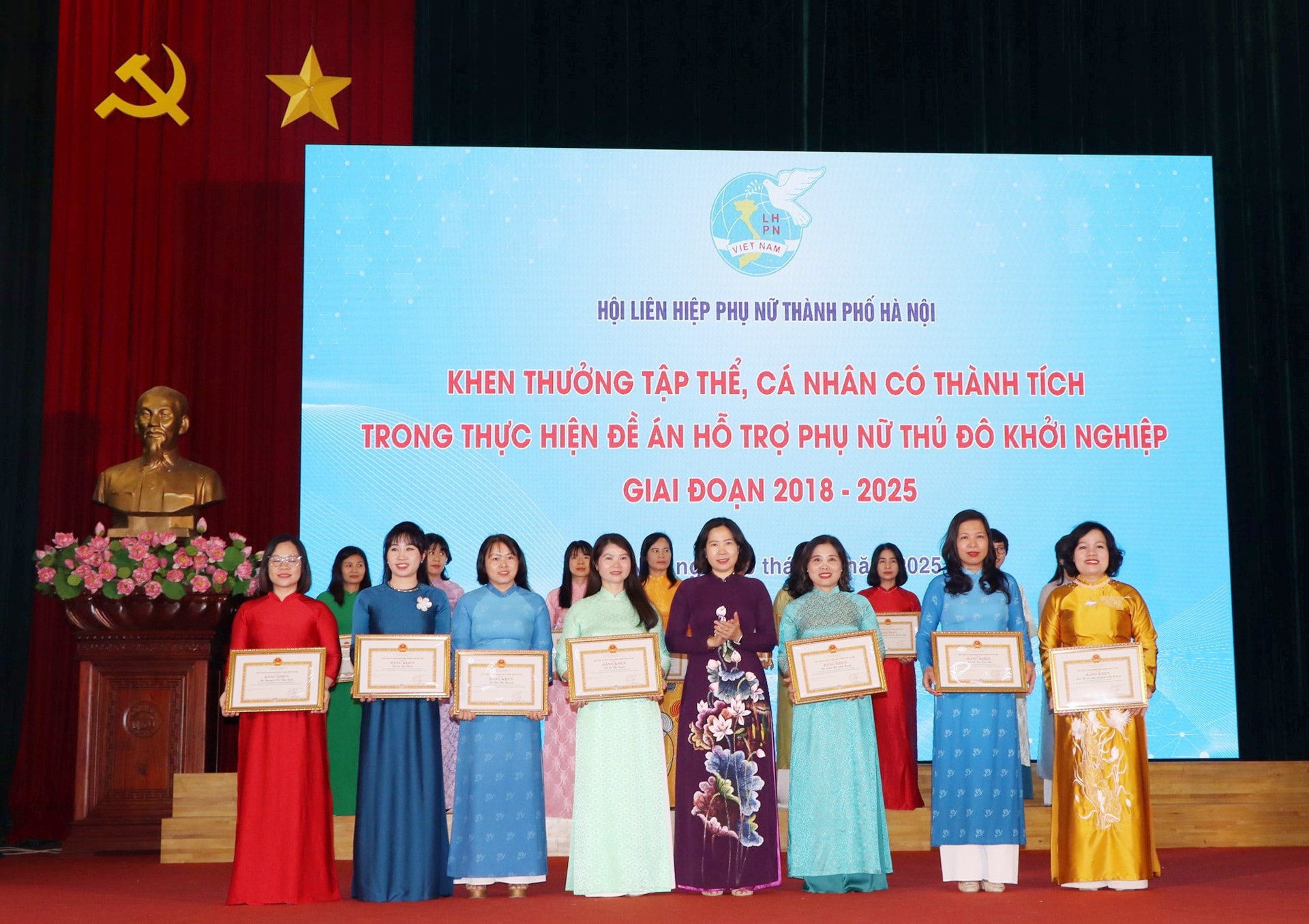Hội Liên hiệp phụ nữ thành phố Hà Nội khen thưởng các gương phụ nữ khởi nghiệp tiêu biểu. Ảnh: PV