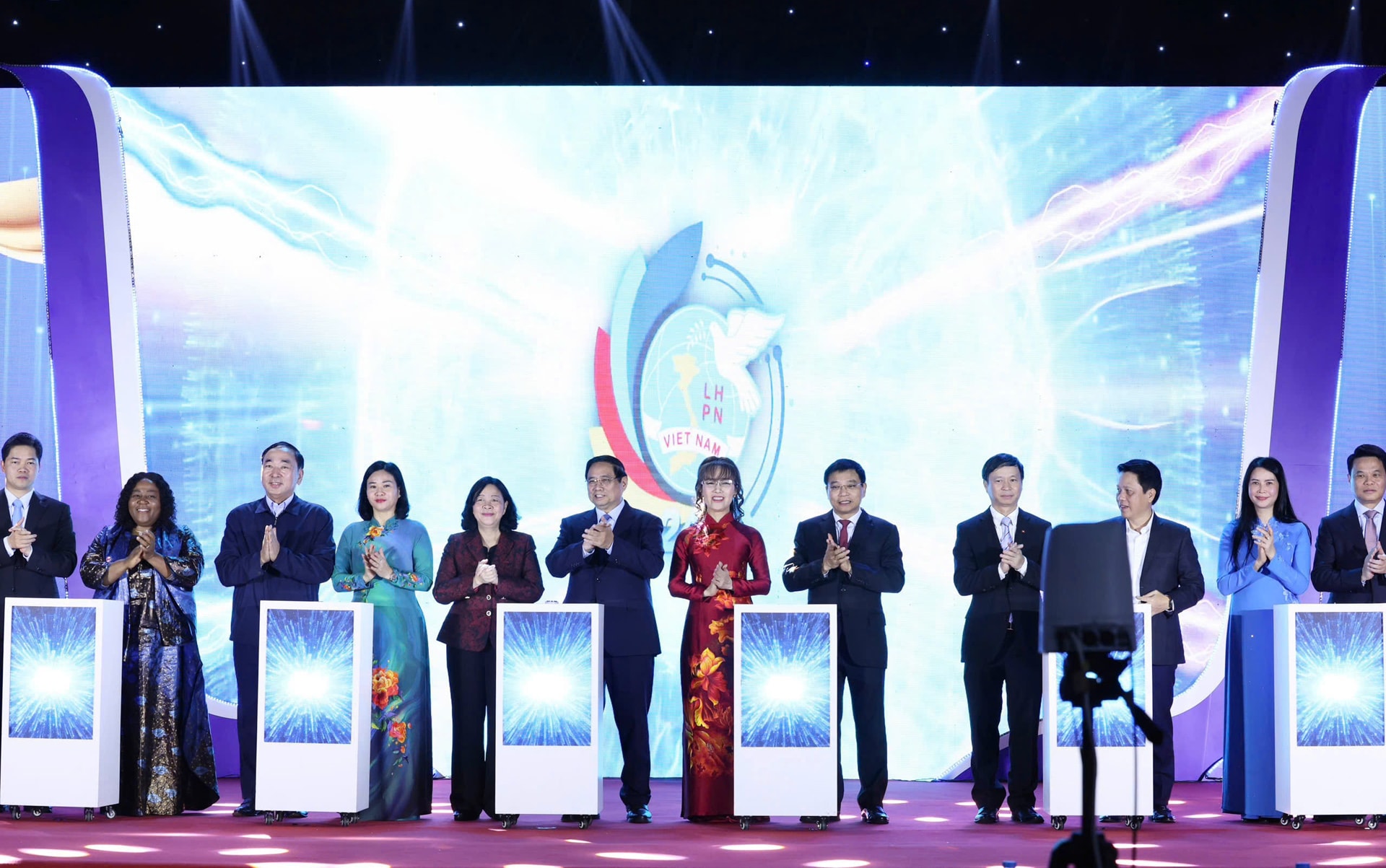 Các đại biểu thực hiện nghi thức triển khai Đề án "Hỗ trợ phụ nữ khởi nghiệp" giai đoạn 2026 - 2030 (Đề án 2415). Ảnh: Thu Hà